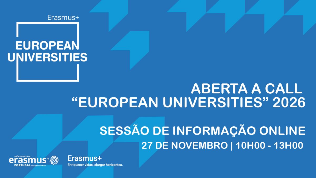 A Comissão Europeia anunciou a abertura da Call Erasmus+ 2026 dedicada à iniciativa “European Universities”, com início a 18 de novembro de 2025 e prazo de candidatura até 4 de março de 2026.