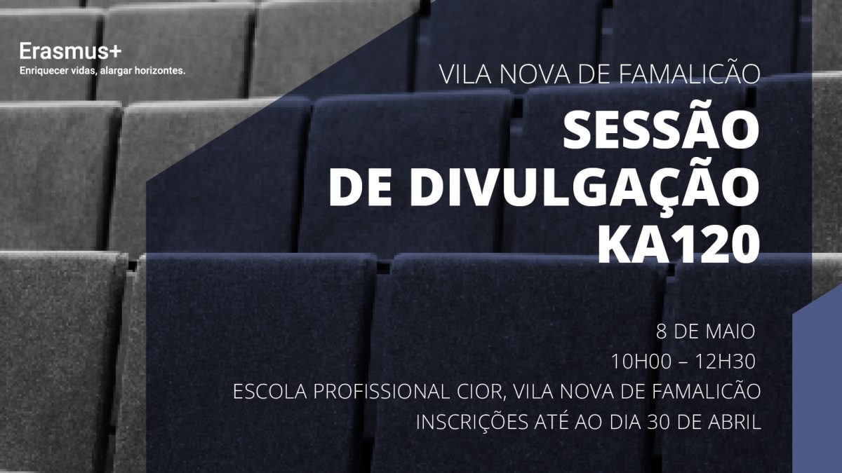 A sessão irá decorrer na Escola Profissional CIOR – Cooperativa de Ensino de Vila Nova de Famalicão, entre as 10h00 e as 12h30 e destina-se aos setores do Ensino Escolar (SCH), Ensino e Formação Profissional (VET) e Educação de Adultos (ADU).